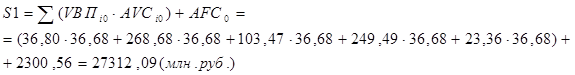 где VBП – объем произведенной продукции, шт.; AVC – переменные затраты на единицу продукции, млн.р.; AFC – общая величена постоянных затрат, млн.р. Для определения влияния факторов используем методику факторного анализа (способ цепных подстановок). Необходимо установить результативный показатель – себестоимость продукции, - рассчитанный при различных условиях: - общая себестоимость в 2006 году: