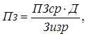 где Кнз — коэффициент нарастания затрат; Зп — первоначальные затраты, осуществленные в первый день производственного цикла, млн.р.; Зо — все последующие затраты, входящие в производственную себестоимость изделия, млн.р.; С — производственная себестоимость изделия, млн.р. В случаях неравномерного нарастания затрат в производстве этот коэффициент рассчитывается по следующей формуле: