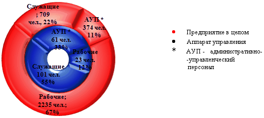 Рисунок 2 – Структура возрастного состава работников предприятия Достижение предприятием поставленных целей, реализация его стратегии, успешное взаимодействие с внешней средой, эффективное использование внутренних факторов зависят не только от правильности построения структуры управления организации, но и от соответствия данной структуры требованиям современного рынка. Сложившаяся в настоящее время организационная структура управления УП «Карлиновгаз» формировалась на протяжении последних 10 лет и в ней нашли отражение все многочисленные изменения, происходившие в экономике народного хозяйства в этот период. Сегодня в состав предприятия входят 16 филиалов, расположенных по районам области. Головное предприятие располагается в городе и именуется Аппаратом управления. Для Аппарата управления УП «Карлиновгаз» характерна линейно-функциональная (штабная) структура управления, которая является результатом синтеза понятий линейной и функциональной структур. При линейно-функциональном управлении у линейных руководителей появляется специальный штаб, состоящий из специальных служб и отделов. Эти службы не обладают правом принятия решения и являются консультативными органами. Предложения функциональных подразделений реализуются через каналы линейных руководителей [7]. Линейно-функциональная структура управления имеет свои достоинства и недостатки. К основным преимуществам данной структуры можно отнести возможность более глубокой проработки и подготовки управленческих решений и плановых заданий; создание хороших условий для профессионального и служебного роста сотрудников; высвобождение линейных руководителей от детального анализа проблем. Недостатки данной структуры сводятся к усилению тенденции к выполнению только своих функций и чрезмерной централизации. Также возникает необходимость координации работы функциональных служб. Унитарное предприятие «Карлиновгаз» имеет достаточно разветвленную организационную структуру управления (приложение А). Генеральный директор осуществляет общее руководство предприятием; несет полную ответственность за его деятельность; организует работу и эффективное взаимодействие труктурных подразделений; обеспечивает выполнение предприятием заданий, согласно установленным количественным и качественным показателям, всех обязательств перед государственным бюджетом, поставщиками, заказчиками и банками; организует производственно-хозяйственную деятельность предприятия; обеспечивает разработку, заключение и выполнение коллективного договора; проводит работу по укреплению трудовой и производственной дисциплины; решает все вопросы в пределах предоставляемых ему прав и поручает выполнение отдельных производственно-хозяйственных функций другим должностным лицам. На предприятии генеральному директору непосредственно подчинены: все заместители, главный инженер, главный бухгалтер, а также отдел правовой и кадровой защиты, контрольно-ревизионная группа, группа управления качеством. Заместитель генерального директора по экономике организовывает финансово-экономическую деятельность предприятия, направленную на повышение производительности труда, эффективности и рентабельности производства, качества выпускаемой продукции, снижение ее себестоимости, 