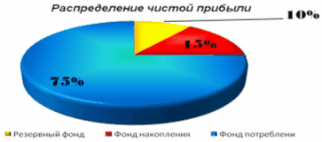 Проверка 2007 г. к 2006 г.: -311+297550+(-282533)=11219 млн. р. Проверка 2008 г. к 2007 г.: 135+173792-173927=-5796 млн. р. Результаты расчетов показывают, что прибыль в отношении изучаемого периода увеличивалась. Это произошло за счет повышения цен реализации продукции, что поспособствовало увеличению суммы прибыли на 297550 млн. р. в 2007 г. и на 173792 млн. р. - в 2008 г.. В 2008 году предприятие увеличило свои объёмы реализации, что позволило ему нарастить прибыль на 135 млн. р. в отношении предшествующего года. Поводами для наблюдающегося повышения цен реализации газа стал общий рост цен в стране, увеличение курса доллара по сравнению с белорусским рублем и внутренние Указы предприятия. Отрицательное влияние на изменение суммы прибыли в большей степени оказало увеличение полной себестоимости продукции, за счет данного фактора прибыль уменьшилась на 282533 млн. р. в 2007 г. и на 137927 млн. р. - в 2008 г. Следует отметить, что положительное влияние роста цен реализации значительно перекрывает отрицательное влияние увеличения себестоимости продукции и снижения объёмов реализации. Это положительно характеризует деятельность предприятия. Анализ балансовой прибыли. Как свидетельствуют данные таблицы 13, в 2007 г. по сравнению с 2006 г. прибыль от реализации продукции увеличилась на 11219 млн. р., но одновременно с этим выросли внереализационные расходы. В итоге предприятие получило прибыль, которая в 2007 г. по сравнению с 2006 г. увеличилась на 6052 млн. р. и составила 22988 млн. р. С учетом налогов, сборов и платежей, прибыль предприятия в 2007 г. составила 13456 млн. р. против 10247 млн. р. в 2006 г. В 2008 г. ситуация с балансовой прибылью сложилась так. Прибыль от реализации продукции по сравнению с 2007 г. снизилась на 5796 млн. р. из-за превышения темпов роста себестоимости реализованной продукции над темпами роста цены реализации продукции (129 % против 126 %). Необходимо отметить снижение операционных расходов, которые снизились в сравнении с предыдущим годом на 7515 млн. р. и составили в 2008 г. 5651 млн. р. Прибыль до налогообложения предприятия составила 24800 млн. р., а с учетом налогов и расходов, производимых из прибыли, - 14814 млн. р. Анализ чистой прибыли. Чистой прибыли за 2007 год получено 13456 млн. р., что на 3209 млн. р. или на 31 % больше, чем за 2006 год. В 2008 г. объём чистой прибыли также увеличился в сравнении предшествующим годом на 1358 млн. р. (или на 10 %). На величину чистой прибыли оказывают влияние такие факторы, как налогооблагаемая прибыль и налоги, выплачиваемые из прибыли. Из таблицы 13 следует, что сумма чистой прибыли увеличилась в большей степени за счет роста прибыли от реализации, включаемую в налогооблагаемую прибыль. Согласно учётной политике предприятия в «Карлиновгаз» большая часть прибыли - 75 %, - направлена в фонд потребления и используется на выплаты социального характера, не приводящие к образованию нового имущества, а носит поощрительный и компенсационный характер, что влечёт за собой замедление оборачиваемости оборотных активов, ограничение возможности роста товарооборота и прибыли. Структура чистой прибыли изображена на рисунке 12. Направление средств в фонд накопления увеличило бы экономический потенциал, повысило платежеспособность предприятия и финансовую независимость, способствовало росту объема выполнения работ и реализации без увеличения размера заемных средств.