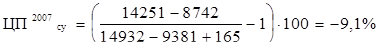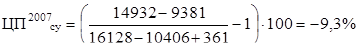 6) Темпы изменения объемов производства продукции промышленности: ∆ОЭЗбб = ОЭЗпрб где ОЭЗпрб - обобщённые энергозатраты, связанные с производством продукции промышленности, в базисном периоде; β – доля энергозатрат, зависящих от изменения объёмов производства продукции промышленности; Joпп – темпы изменения объёмов производства продукции промышленности в сопоставимых ценах, %. ∆ОЭЗпп2007 =1345 ∆ОЭЗпп2008=2272 Суммарная величина поправок ∑∆ОЭЗб составила: в 2007 г. - 361 т.у.т.; в 2008 г. – 165 т.у.т. Итак, показатель энергосбережения УП «Карлиновгаз» в 2007 и 2008 г. с учётом сопоставимых условий равен