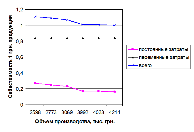Одним из главных резервов снижения затрат на предприятии является повышение объемов производства, которое влияет на уменьшение затрат на единицу продукции (1 грн. строительно-монтажных работ), а следовательно, на конечную цену единицы продукции и размер прибыли.