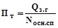 где ТП – годовой объем товарной продукции; Фосн – стоимость основных средств. Фондоотдача при номинальных условиях производства: fном. = ((2,1*1000/0,5)*4370)/3137211 = 5,85 грн/грн Фондоотдача при фактических условиях производства: fфакт. = ((2,1*1000/0,5)*7800)/ 3137211 = 10,44 грн/грн Срок окупаемости основных средств: