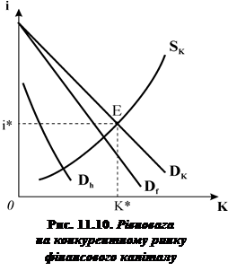 Ринкова ставка проценту, як і будь-яка рівноважна ціна, визначається в результаті взаємодії попиту на гроші та їх пропонування. Крива ринкового пропонування кредитних ресурсів утворюється як сума індивідуальних обсягів пропонування позичкових коштів за кожного з можливих рівнів ставки проценту. Згідно емпіричних досліджень, чутливість домогосподарств до зміни ставки проценту незначна, еластичність заощаджень за процентною ставкою низька, тому крива ринкового пропонування позичкових коштів є стрімкою висхідною, близькою до вертикальної. Фірма за ринковою ставкою проценту може одержати будь-яку суму грошей, оскільки її потреби у кредитних ресурсах надто малі порівняно з наявним на ринку фінансовим капіталом. Тому пропонування позичкових коштів для фірми абсолютно еластичне , крива пропонування фірми є горизонтальною лінією на рівні рівноважної процентної ставки. Попит на позичкові кошти має дві складових – попит фірм та попит домогосподарств. Фірма