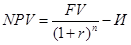 где ПР - прибыль организации; Л - бухгалтерская норма рентабельности. Другим статическим методом оценки эффективности инвестиционного проекта является приведенные затраты . Экономический смысл приведенных затрат заключается в следующем: все затраты суммируются и приводятся к единой размерности при помощи нормативных коэффициентов, затем из нескольких вариантов выбирается тот, который обеспечивает минимум приведенных затрат. Формулу можно представить в виде двух вариантов: ЗП = И * Ен + Сэ → min; (4) ЗП = И * Тн + Сэ → min, (5) где Сэ - текущие расходы, связанные с эксплуатацией инвестиций (капитальные вложения). Капитальные вложения - это инвестиции, вложенные в покупку, модернизацию или реконструкцию основных фондов предприятия. Приведенные затраты используются при расчете эффективности капитальных вложений. Для того, чтобы получить условную величину совокупных затрат, включающих и инвестиции, и текущие расходы используют два методических приема: 1. Умножая инвестиции на нормативный коэффициент эффективности (И*Ен) мы условно получаем ту часть инвестиций, которая приходится на один год их освоения, а затем суммируем их с текущими затратами. 2. Умножая текущие расходы на нормативный срок возврата инвестиций (Тн + Сэ) мы получаем текущие расходы за период, соответствующий нормативному сроку окупаемости инвестиций, а затем эту величину суммируем с инвестиционными расходами. В условиях рыночной экономики наиболее корректно использовать показатель приведенной прибыли при выборе лучшего варианта инвестиций, так как именно прибыль является критерием экономической эффективности функционирования предприятия. Данный показатель рассчитывается следующим образом: ПР = Q * [Ц - (Сэ + Ен * Иу)] → max, (6) где ПР - прибыль приведенная; Q - объем производства в натуральном выражении; Ц - цена единицы продукции; Сэ - текущие эксплуатационные расходы или себестоимость продукции; Иу - удельные инвестиции или удельные капитальные вложения в расчете на единицу произведенной или реализованной продукции. К динамическим методам оценки эффективности инвестиционного проекта относятся: Метод чистой текущей стоимости; Дисконтированный срок окупаемости; Индекс рентабельности; Внутренняя норма доходности; Дюрация. Метод чистой текущей стоимости (NPV). Чистая текущая стоимость - это стоимость, полученная путем дисконтирования отдельно на каждый временной период разновидности всех оттоков и притоков доходов и расходов, накапливающихся за весь период функционирования объекта инвестирования при фиксированной, заранее определенной процентной ставке (норме процента). Формулу для расчета чистой текущей стоимости NPV можно определить в следующем виде: