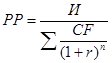 где FV - будущая стоимость инвестиций через n лет; n - периоды реализации инвестиционного проекта, включая этап строительства (n = 0, 1, 2,…); r - ставка дисконтирования (желаемая норма прибыли); И - инвестиционные расходы. Другим распространенным методом оценки эффективности инвестиционного проекта является дисконтированный срок окупаемости (PP), который рассчитывается либо методом последовательных интеграций, либо по формуле: