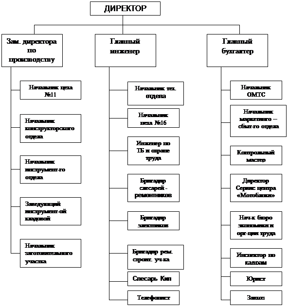 Рисунок 2.1 – организационная структура УЗТО УЗТО возглавляет директор, который назначается Генеральным директором БПО «Прогресс» на контрактной основе сроком на 5 лет. В обязанности директора входит: · обеспечение выполнения решений БПО «Прогресс» · совершение сделок и других юридических актов · распоряжение имуществом предприятия · заключение договоров, в том числе трудовых в пределах средств · представление интересов УТО во всех учреждениях и организациях · формирование персонала, издание приказов в целях обеспечения нормальной работы предприятия. Контроль над финансово-хозяйственной деятельностью УЗТО осуществляет его главный бухгалтер и ревизионная комиссия БПО «Прогресс». Поскольку УЗТО является филиалом ФГУП БПО «Прогресс», все взаимоотношения между предприятиями фиксируются на балансовом счете 79. Нестабильный рынок изготовления технологической оснастки и обострение конкуренции требуют эффективного управления маркетингом на предприятии. Основные задачи маркетинговой службы на УЗТО: · поиск заказов и платежеспособных заказчиков, то есть формирование рынка сбыта продукции УЗТО · обеспечение качества и конкурентоспособности продукции, снижение затрат на ее производство · разработка, внедрение и продвижение новых видов продукции, новых технологий. Заказы в УЗТО оформляются на новые изделия главным технологом ФГУП БПО «Прогресс», согласовываются с ИКБ и группой технического надзора УЗТО и утверждаются главным инженером ФГУП БПО «Прогресс». Заказы на дублирование технологической оснастки и покупного инструмента оформляет начальник цеха и утверждаются главным инженером ФГУП БПО «Прогресс». 2.3 Развитие материально-технической базы и контроль качества на предприятии В 2003 году на УЗТО был введен цеховой контроль качества выпускаемых товаров, контроль за выполнением технологических процессов совместно с заказчиками. Были приняты на работу контрольный мастер и контролер. Основным критерием качества является высокая квалификация работающих. С этой целью проводится индивидуальное обучение вновь поступающих и повышение квалификации работающих. В течение 2003 года выполнены мероприятия по улучшению качества на 80%(недовыполнены пункты по ремонту машин и приборов). В целях повышения конкурентоспособности выпускаемой продукции производится постоянное изучение аналогичной продукции конкурентов. На основании этого ведется целенаправленная работа по уменьшению себестоимости и, как следствие этого, цены на выпускаемую продукцию. Большое внимание уделяется дизайнерской проработке выпускаемой продукции. Имущество УЗТО составляют основные фонды и оборотные средства, а также иные ценности, закрепленные за ним, стоимость которых отражается в балансе УЗТО и сводном балансе БПО «Прогресс». Источниками формирования имущества предприятия являются: 1. Денежные и иные материальные средства, закрепленные за ним 2. Доходы, полученные от реализации продукции, работ, услуг, а также от других видов хозяйственной деятельности 3. Безвозмездные и благотворительные взносы, пожертвования организаций, предприятий и граждан 4. Кредиты, предоставляемые на цели, связанные с деятельностью УЗТО 5. Иные источники, не запрещенные законодательством В 2003 году УЗТО приобрел: 1. Вертикально-фрезерный станок 6Р13 2. Автомашину ГА