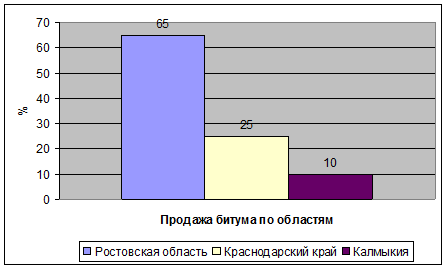 Рисунок 2 – Продажа битума по областям Конкурентами по продаже битума являются: ЗАО «Дорстройматериалы», Севкавспецснаб, ЗАО «Нефрес» (Москва), ООО «Терра-1».