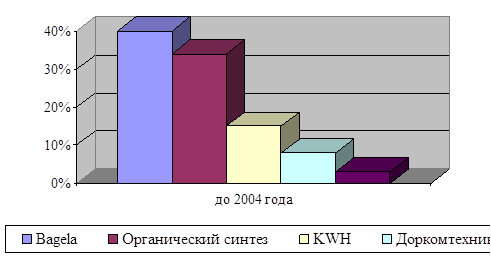 Рисунок 4 - Основные поставщики ГУП РО «Ростовдорснаб» до 2004 года Основные поставщики ГУП РО «Ростовдорснаб» после 2004 года представлены на рисунке 5.