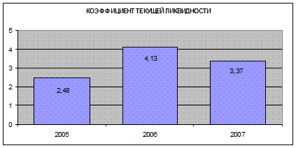 (рис. №2) Коэффициент текущей ликвидности Коэффициент обеспеченности собственными оборотными средствами на 1 января 2008 г. составил 0,86. Коэффициенты текущей ликвидности и обеспеченности собственными оборотными средствами характеризуют ОАО "Торговый Дом ГУМ" как финансово-устойчивую и платежеспособную компанию.