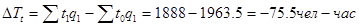 Затраты труда снизились на 75,5 чел. час. - за счет изменения объема производства: