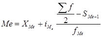 Рассчитаем показатели: моду и медиану. Мода - наиболее часто встречающееся значение признака. В интервальном ряду определяется модальный интервал (имеет наибольшую частоту). Значение моды определяется по формуле: