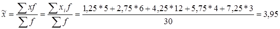 i – номер группы 1 (0,5+2,0)/2=1,25 2 (2,0+3,5)/2=2,75 3 (3,5+5,0)/2=4,25 4 (5,0+6,5)/2=5,75 5 (6,5+8)/2=7,25