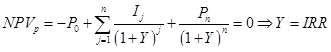 : Здесь NPVp – чистая текущая стоимость благоприобретений и издержек данного конкретного инвестиционного проекта, а IRR – внутренняя норма рентабельности проекта. Если среднерыночная норма рентабельности такого типа проектов составляет величину Y 0 , то управление объектом может быть признано эффективным, если Y > Y 0 . Отметим здесь, что в (3.18) - (3.22) доход от эксплуатации и доход от перепродажи объекта «очищаются» от всех налогов, кроме налога на прибыль. Однако, поскольку в составе нормы отдачи на капитал содержится соответствующая ставка налога на прибыль, то рассчитанная по (3.20) величина выкупной цены Р0 объекта не должна корректироваться вычитанием налогов. Заметим, что в рамках данной модели обеспечения возврата капитала и получения дохода на капитал по соотношению типа (3.20) можно рассчитывать текущую стоимость