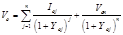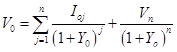 Метод капитализации доходов нормой отдачи устанавливает (с использованием общей нормы дохода на капитал Yo в качестве нормы дисконта) связь искомой рыночной стоимости Vo с величинами чистого операционного дохода Ioj , вычисленными для каждого j -го года всего прогнозного периода в n лет, и стоимостью реверсии Von на конец последнего года прогнозного периода - в соответствии с (4.1):