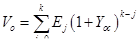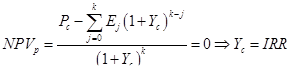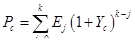 здесь Ioj – чистый операционный доход, Yo — общая норма отдачи на капитал, вложенный в данный тип недвижимости, Vn – расчетная величина дохода от перепродажи объекта в конце n -го периода (за вычетом налогов, комиссионных платежей брокерам и прочих сборов). По терминологии, принятой в оценке, процедура пересчета по (3.23) будущих благоприобретений к моменту времени, соответствующему началу первого из n периодов инвестиционного цикла, ознаменованному одномоментным вложением средств в объект, называется капитализацией будущих доходов нормой отдачи Yo . В западной литературе и в некоторых российских публикациях эта процедура именуется DCF-анализом. Проект девелопмента с продажей созданного объекта. Рассмотрим теперь модель обеспечения одномоментного получения средств (в сумме Рс ) для возврата капитала и получения дохода на капитал, вложение которого в объект недвижимости было рассредоточено во времени частями Е j по k периодам, предшествовавшим моменту совершения сделки.