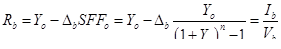 Здесь SFF =1/ Sn - коэффициент фонда возмещения (Sinking Fund Factor), представляющий собой четвертую из шести функций сложного процента, а Sno =[(1+Yo )n –1]/Yo - будущая стоимость единичного аннуитета, являющаяся еще одной (пятой) функцией сложных процентов. Обратим внимание на необходимость обоснования возможности использования в методе капитализации доходов нормой отдачи соотношения Ro = Io / Vo , введенного в методе прямой капитализации. Здесь нужно иметь в виду феномен аксиомы теории оценки: очевидно, что рыночная стоимость, найденная «прямой» капитализацией и капитализацией нормой отдачи на капитал одного и того же дохода должна быть одинаковой. При этом нужно лишь иметь в виду, что в (4.28) коэффициент Ro определяется аналитическим соотношением, полученным путем преобразования формулы дисконтированных денежных потоков, в то время как в (4.7) Ro задается эмпирическим соотношением, обеспечивающим обработку данных о конкретных сделках. Нетрудно заметить, что при тех же упрощающих предположениях аналогичную структуру будут иметь связи норм отдачи для собственного и заемного капиталов с соответствующими коэффициентами капитализации: