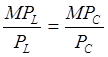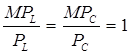 где: МР – предельный физический продукт труда (L) или капитала (С); Р – цена соответствующего ресурса; MRP – предельная доходность ресурса; MRC – предельные издержки ресурса. Однако для максимизации прибыли предприятие должно добиться не только равенства соотношений по разным видам ресурсов, но и того, чтобы эти соотношения, эквивалентные между собой, были равны единице. В нашем случае это будет выглядеть так: