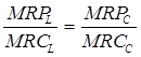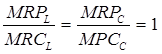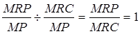 Последнее равенство применяется по отношению к рынкам ресурсов, характеризующимся несовершенной конкуренцией, где цена ресурса может не совпадать с предельными издержками ресурса. Правило выбора факторов производства, обеспечивающее максимизацию прибыли предприятия при наименьших издержках производства, тождественно правилу выпуска продукции с максимальной прибылью MR = МС. Поскольку MR = MRP / МР, а МС = MRC / МР, то из MR = МС следует, что MR / МС = 1. Подставляя значения, получаем: