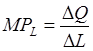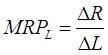 где: MPL – предельная производительность труда; DQ – прирост продукции, вызванный дополнительной единицей труда; DL – дополнительная единица труда. Однако фирму интересует не только величина дополнительной продукции, выпущенной в результате найма нового работника, но и то, какой доход она получит от продажи продукции, созданной добавочной единицей труда . А определить это можно по формуле предельного дохода от продукта труда (MRPL )