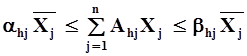 a hj , b hj – соответственно минимально и максимально допустимый удельный вес h -ой группы кормов в общей питательности рациона, выраженной в кормовых единицах; Ahj – содержание кормовых единиц в единице измерения j -го вида корма h - ой группы кормо., 3. В рационе соблюдаются соотношения отдельных видов кормов и кормовых добавок