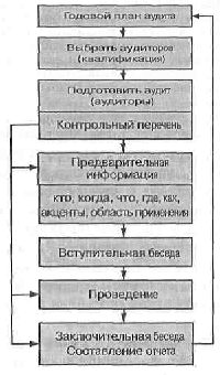 Рис. 7. Подготовка к внутренним аудитам Плановые проверки проводятся по годовому плану, который должен включать: · проверяемые подразделения / процессы; · важные элементы системы качества; · временные интервалы проведения этапов проверки. Проверка проводится на основе так называемого контрольного перечня вопросов, подлежащих выяснению, ориентировочный состав которого следующий: » проверяемое подразделение; » аудиторы; » сроки / местонахождение; » плановый / внеплановый; » цель проверки; » проверяемые процессы; » элементы системы качества; » участники проверки; » основные моменты проверки; » цели подразделения / процесса; » нормативные / законодательные требования; » положительные результаты внедрения системы; » необходимые изменения системы качества. » внешние проверки, подразделяющиеся на: • проверки, проводимые независимой третьей стороной с целью сертификации (так называемого Third-Party-Certification); • проверки, проводимые заказчиками у поставщиков / подрядчиков, называемые также оценкой второй стороной (так называемые Second-Party-Assesment). График внешних и внутренних проверок разрабатывается руководителем службы качества и утверждается уполномоченным высшего руководства предприятия по системе качества. Для того чтобы обеспечить запланированную эффективность системы менеджмента качества, большое внимание в рамках проекта реструктуризации уделяется подготовке кадров. Общую направленность обучающих программ в сфере менеджмента качества можно сформулировать как «повышение качества через предупреждение дефектов». Основная задача процедур подготовки, переподготовки, повышения квалификации и аттестации кадров заключается в обеспечении соответствия квалификационного уровня руководителей и специалистов компании требованиям задач, решаемым в области качества. Критериями профессиональной пригодности являются: · степень соответствия работника требованиям, предъявляемым данным видом профессиональной деятельности. Для этого существует система специальных справочников; · характер личности. Он должен соответствовать характеру работы: понятно, что он различен у научного работника и рабочего на конвейере. Для оценки соответствия вырабатывается система критериев, по которым судят о пригодности работника к данному виду деятельности. Для подготовки кадров предприятия / компании предусматривают следующие виды обучения: - первоначальное профессиональное обучение рабочих, принятых на работу и ранее не имевших профессии; - переподготовка рабочих на другую профессию; - повышение квалификации рабочих; - повышение квалификации руководящих работников и специалистов. Концепции и программы обучения формируются в зависимости от размера и задач (стратегии) предприятия. Так, крупные предприятия обычно формируют собственную концепцию и программы обучения. При этом проводимые самим предприятием курсы нередко дополняются внешним обучением. Малые и средние предприятия преимущественно используют предложения специализированных учебных заведений по проведению курсов. Существует ряд учебных и консультационных организаций, предлагающих свои услуги в этой области – как отечественных, так и зарубежных. При решении вопроса, кому отдать предпочтение, следует исходить из цели обучения. Если предприятие (компания) хочет в конечном итог