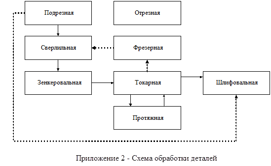 Режим работы цеха: две смены по 8 часов. Содержание Задание на курсовой проект Введение 1. Принципы, формы и методы организации производства 1.1 Принципы организации производства 1.2 Формы организации производства 1.3 Методы организации производства 2. Проект организации механического цеха 2.1 Расчет производственной программы 2.2 Расчет потребности в оборудовании 2.3 Расчет площади цеха 2.4 Расчет численности основных производственных рабочих 2.5 Организация ремонтного хозяйства 2.6 Организация инструментального хозяйства 2.7 Организация складского хозяйства 2.8 Организация транспортного хозяйства 2.9 Организация управления цехом 2.10 Расчет технико-экономических показателей 2.11 Распределение работ между исполнителями методом линейного программирования 2.12 Пути совершенствования организационной подготовки производства в цехе Заключние Список литературы Приложение А. Годовой план ремонта оборудования по механическому цеху на 2000 год Приложение Б. Схема обработки деталей Приложение В. Организационная структура цеха Создаваемый в процессе перехода к рыночным хозяйственным отношениям механизм управления производством требует совершенствования организации производства как важного фактора повышения его эффективности за счет лучшего использования всех видов ресурсов и сокращения производственных потерь. На данный момент состояние организации производства на предприятиях машиностроения характеризуется наличием существенных недостатков, следствием которых является неритмичная работа и невыполнение обязательств по поставкам многих предприятий, низкое качество продукции и т.д. Развитие промышленного комплекса в настоящее время происходит под влиянием необратимых преобразований, обеспечивающих переход к рыночной экономике, что влечет за собой в российских условиях не только снижение уровня обновления производства, но и их коренную структурную перестройку. Именно поэтому необходимо уметь квалифицированно подходить к решению задач проектирования и диагностики состояния организации производства в объединениях и организациях промышленности, разрабатывать пути ее совершенствования в конкретных производственно-хозяйственных условиях, уметь экономически оценивать значение организационных усовершенствований. В первой части данного курсового проекта раскрывается сущность и содержание принципов, форм и методов организации производства. Во второй части проведен расчет производственной программы, потребного количества оборудования и основных производственных рабочих, площади цеха, разработана инфраструктура цеха. Организация ремонтного хозяйства предполагает составление плана ремонта оборудования цеха, в том числе определение структуры и длительности межремонтного цикла, длительности межремонтного и межосмотрового периодов, трудоемкость ремонтных работ, расчет численности рабочих для выполнения ремонтных работ, основных станков и площади ремонтной базы. В процессе организации инструментального хозяйства рассчитывается расход режущего инструмента и оборотный фонд инструмента в цехе, определить площадь, потребное количество оборудования и рабочих подразделений инструментального хозяйства: инструментально-раздаточной кладовой, заточного отделения, отделения технологической оснастки. Организа