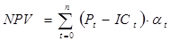 где Р t – годовой доход от инвестиций в t -м году (t = 0,1,2,3, …, n ); п – количество лет, в течение которых инвестиции будут генерировать доход;