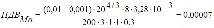 Рассчитаем ПДВ для твердых частиц, если известно, что ПДКм.р. =0,15 мг/м3 . Сф =0,1ПДКм.р . (4.2.7) Сф =0,1·0,15=0,015 мг/м3 Н=20 м; Q =3,28·10-3 м3 /с; Д=0,3 м. Значение А для Северного Кавказа равно 200; F для пыли равно 3; m·n=1; E=1, тогда