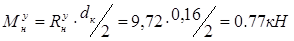 Рисунок 10 – Расчетная схема опорного ролика на смятие 2.1.2.2 Расчет оси опорного ролика на прочность Расчетная схема и эпюра изгибающих моментов показана на рисунке 11. Горизонтальная составляющая реакция от рельса Rн , кН;