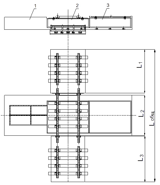 Рисунок 7- Схема замены ёмкостей со щебнем при наличии в стенде пространства под шпалы Имеется масса вариантов осуществления перемещения ёмкостей под рельсошпальную решетку с целью замены старого щебня на новый. К примеру можно использовать лебёдку, гидравлическую систему, так же возможен вариант применения цепной передачи. Возможные варианты представлены на рисунках 8.1- 8.3.