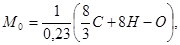 Под реакциями подписаны молярные массы веществ, участвующих в реакциях, а в правых частях в общем виде записано количество теплоты, выделяющейся в этих реакциях. На основании этих записей можно составить формулу для расчета теоретически необходимого количества воздуха для сгорания 1 кг топлива. Следует учесть количество кислорода, содержащегося в топливе, и массовую долю кислорода в воздухе (0,23):
