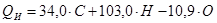 где a – коэффициент избытка воздуха; в карбюраторных двигателях обычно a=0,8…1,15. Учитывая, что у нас a=1,14, получим Количество теплоты, выделяющееся при сгорании топливаЕсли известны основные химические реакции, протекающие при сгорании топлива, и тепловые эффекты этих реакций, то легко записать формулу для вычисления суммарного количества теплоты, МДж/кг, выделяющейся при сгорании 1 кг топлива (формула Менделеева):