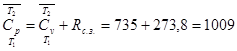 Средняя мольная теплоемкость продуктов сгоранияВ интервале температур (Т1