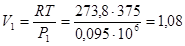 Показатель политропы для процесса сжатия. В задании приводится значение ( n 1 - k 1 )=- D 1 , поэтому n 1 = k 1 - D 1 = 1,373 – 0,009=1,364. P1 *V1= RT; =>