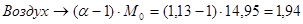 где M 0 – масса воздуха, необходимая для сгорания 1 кг топлива, кг; C, H, O – массовые доли углерода, водорода и кислорода в топливе. Последнюю формулу можно записать в виде: Действительное количество воздуха, подаваемое для сгорания 1 кг топливаКоличество воздуха, подаваемое для сгорания, обычно отличается от теоретически необходимого количества и записывается в виде: