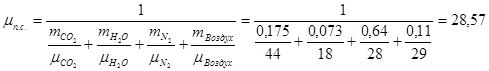 Молярная масса продуктов сгоранияВычисляется по формуле (12) :