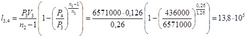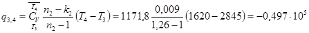 Полученное значение температуры отличается от первоначально принятого на 10, что находится в допустимом интервале отклонения. Итерация: Взяли Т4 =1610, получили 1620 Энергетические характеристики циклаУравнение теплового балансаДля рассмотренного цикла можно записать баланс в виде: q 2,3 + q 1,2 + q 3,4 + q 4,1 = l 3,4 + l 1,2 , или q 2,3 = q и , где q и – энергия, полученная в цикле q и = l 3,4 + l 1,2 – q 1,2 – q 3,4 – q 4,1 ; (17) l 1,2 – работа сжатия, (18)