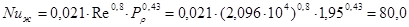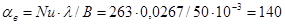 Расчет коэффициента теплоотдачи Вычисляем критерий Рейнольдса для течения воздуха в межтрубном пространстве, за характерный размер принимаем ширину радиатора В: