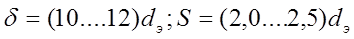 где dэ — диаметр электрода, мм. При наплавке сварку обычно ведут постоянным током обратной полярности. Напряжение сварочной дуги задают в пределах 25...35 В, скорость наплавки составляет 20...25 м/ч, подачи проволоки — 75... 180 м/ч. Вылет электрода и шаг наплавки зависят от диаметра проволоки и определяются по формулам: