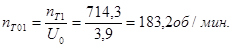 Частота вращения на 1 передаче на вторичном валу КП