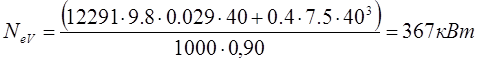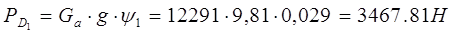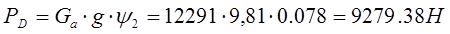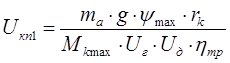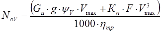 де Ga – повна маса АТЗ, кг; g – прискорення сили тяжіння м/с2 ; ψV – коефіцієнт сумарного опору дороги при максимальній швидкості ψV = 0,029. Vmax – максимальна швидкість руху АТЗ м/с; Кп