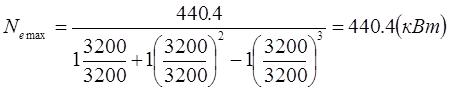 Максимальна потужність Nе max двигуна проектованого АТЗ можна знайти по величині потужності Nе V , яка необхідна для руху проектованого АТЗ з заданою максимальною швидкістю. Загальне рівняння кривої Nе =f(nk) ЗШХ двигуна внутрішнього згоряння з достатнім ступенем влучності відбивається формулою Р.С. Лейдермана: