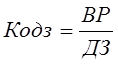 Цей показник характеризує середній термін погашення дебіторської заборгованості. Позитивно оцінюється зниження цього коефіцієнта[3]. Коефіцієнт оберненості дебіторської заборгованості (Кодз) визначається як відношення виручки від реалізації до середньої за період дебіторської заборгованості (ДЗ):