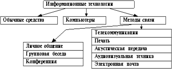 Рис. 1.4 Інформаційні технології Треба звикнути до жорстких правил відносно можливостей комп’ютерів, локальних і корпоративних мереж як незалежних «управлінців», «регуляторів» та «інформаторів» в прямому і переносному значенні. Це норма. Комп’ютерні програми дисциплінують і організовують роботу на високому рівні як керівників, так і підлеглих, створюють нові правила і прийоми в їхніх взаємовідносинах на робочих місцях. Вони здатні здійснювати закритий і відкритий аудит підрозділів фірми, успішно розв’язують задачі ефективного документообігу. Найбільш успішно в інформаційному середовищі фірм малого та середнього бізнесу можуть застосовуватися такі комп’ютерні програми: - Microsoft Office – пакет програм, що реалізують повний комплекс операцій по обробці інформації, в т.ч. економічного характеру. - Word 7.0 – універсальний текстовий редактор, який дозволяє формувати текстові документи, автоматично перевіряти орфографію і граматику, вставляти графіку і дані з інших пакетів Office. - Excel 7.0 – універсальний табличний процесор – зручний засіб автоматизації робіт з даними в табличній формі (списки, бухгалтерські розрахунки). Є можливість побудови з метою аналізу різноманітних діаграм на основі інформації, що міститься в таблицях. - Access 7.0 – універсальна система управління базами даних. Ця програма об’єднує відомості з різних джерел в одній реляційній базі даних. - Power Point 7.0 – універсальна система підготовки презентацій. Дозволяє представити аналіз інформації в формі екранної презентації слайдів з діаграмами, а також анімувати надану інформацію, щоб показати аудиторії динаміку зміни певного процесу. - Outlook 7.0 – система планування справ та переписки. Призначена для різнобічного управління інформацією. До складу Outlook входять: журнал для протоколювання роботи, авто створення для генерації інформаційних елементів, автоархівування. - Фірми зі стабільним розвитком мають можливість побудувати і працювати на локальних комп’ютерних мережах, підключатися до мережі Internet. Деякі до сих пір вважають це дуже дорогою справою, але вони помиляються.. Підключення до Internet дає більш 1000 джерел інформації тільки для бізнесу та підприємництва.[2, с. 132-138] 2 АНАЛІЗ ІНФОРМАЦІЙНОГО ЗАБЕЗПЕЧЕННЯ ФУНКЦІОНУВАННЯ ВІДДІЛУ СПОЖИВЧОГО КРЕДИТУВАННЯ АКБ «ПРАВЕКС-БАНК»2.1 ТИПОЛОГІЯ СИСТЕМ КОМУНІКАЦІЇКомунікації — це і обмін інформацією в процесі діяльності, спілкування, і шляху сполучення. Ефективністю комунікацій в організації часто визначається якість рішень|розв'язання,вирішення,розв'язування| і їх реалізації. Бізнес-комунікації правомірно визначити як науку, об'єктом дослідження якої є|з'являтися,являтися| аспекти спілкування людей в діловій сфері, чинники|фактор| забезпечення ефективності ділових контактів. [12, с. 28] Як і в будь-якій системі, в організації всі типи комунікацій, що виділяються, знаходяться|перебувати| в складній взаємодії, впливають один на одного, і виявлення типів потрібне тільки|лише| для систематизації накопичених знань, поглиблення пізнання у вузькій області, в даному виді комунікацій. Типологія комунікацій: 1. За місцем здійснення бізнес-комунікації| діляться на: · внутрішні, коли сторони комунікації знаходяться|перебувати| в рамках|у рамках| організації; · зовнішні, коли одна із сторін відноситься до суб'єктів зовнішнього середовища|