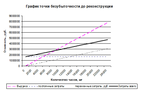 Рис.8. График точки безубыточности до реконструкции автосервиса