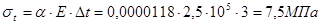Таким чином отримано, що розрахункові напруження в рейках не перевищують допустимих, отже умова міцності забезпечується, тобто за міцністю колія відповідає заданим експлуатаційним умовам. Допустима з умов міцності зміна температури рейкової пліті відносно температури закріплення визначається за формулою: Для умов літа (по міцності головки рейки):