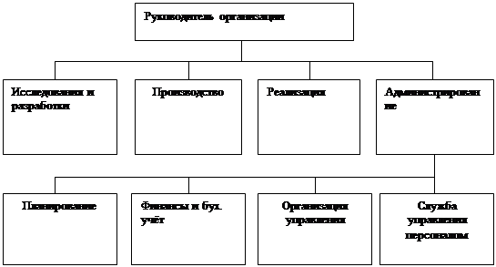 Рис. 6 Схема оргструктуры системы УП, ориентированная на обслуживание функциональных сфер организации. При продуктовом типе построения оргструктуры возможен вариант, представленный на рис.7