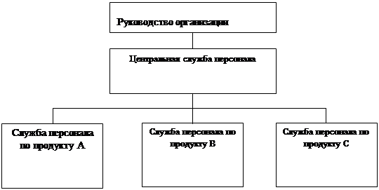 Рис.7 Схема оргструктуры системы УП при продуктовой структуре. Следует отметить, что само наличие централизованной службы УП определяется степенью юридической и административной самостоятельности продуктовых дивизионов. В крупных организациях наблюдается дальнейшее структурирование внутренних подразделений системы, например, подразделения в отделе обучения персонала (рис.8).