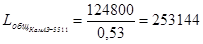 де tн ТО-2 =21,6 л-година, tн ТО-1 =5,7 л-година, tн СО =15,1 л-година, tн ЕОс =0,18, tн ЕОт =0,16 л-година, tн ТР =5 л-година/1000 км – нормативні трудомісткості, відповідно ТЕ-2, ТЕ-1, З, ЕОс , ЕОт і ТР автомобілів сімейства КамАЗ, і tн ТО-2 =10,8 л-година, tн ТО-1 =2,5 л-година, tн СО =12,96 л-година, tн ЕОс =0,24, tн ЕОт =0,21 л-година, tн ТР =3,6 л-година/1000 км – нормативні трудомісткості, відповідно ТЕ-2, ТЕ-1, З, ЕОс , ЕОт і ТР модифікацій автомобіля ЗИЛ-130. л- л- л- л- л- Трудомісткість усіх ІЗ за рік для автомобілів КамАЗ-5511 дорівнює: